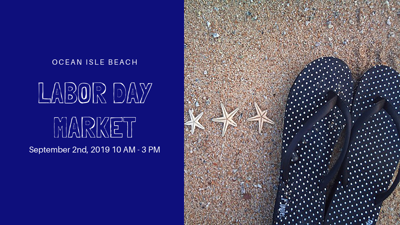 The market will be located at 5 W. Third St. next to the Ocean Isle Town Hall on Labor Day September 2nd, 2019. Hours of operation will be 10:00 AM – 3:00 PM.